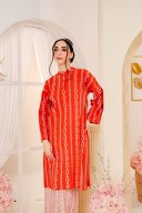 A modest long kurung featuring an exquisite piece of embroidery art, designed with a drop shoulder cut for individual comfort. It comes in two bold colors that contrast beautifully with the white-thread floral embroidery.