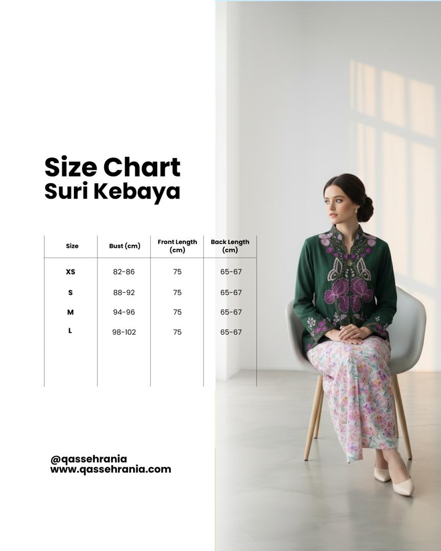 - Featuring intricate traditional 'sulam tebuk' - contrasting embroidery along the bodice, sleeve hems and hemline